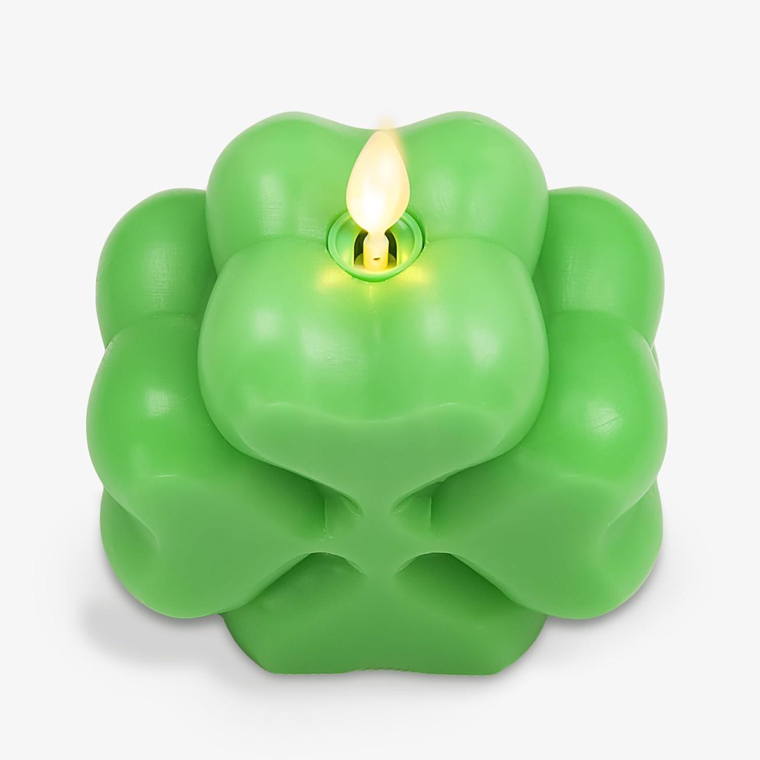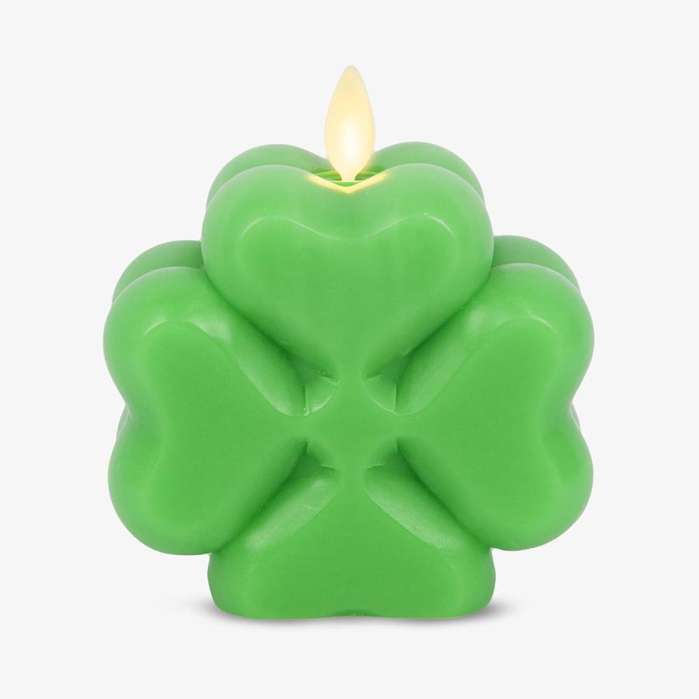 Luminara 4-Leaf Clover Candle - Flickering Real-Flame Technology- Flameless LED- Remote Ready- Classic Green St. Patrick's Day Shamrock- 3.9" x 4.3"