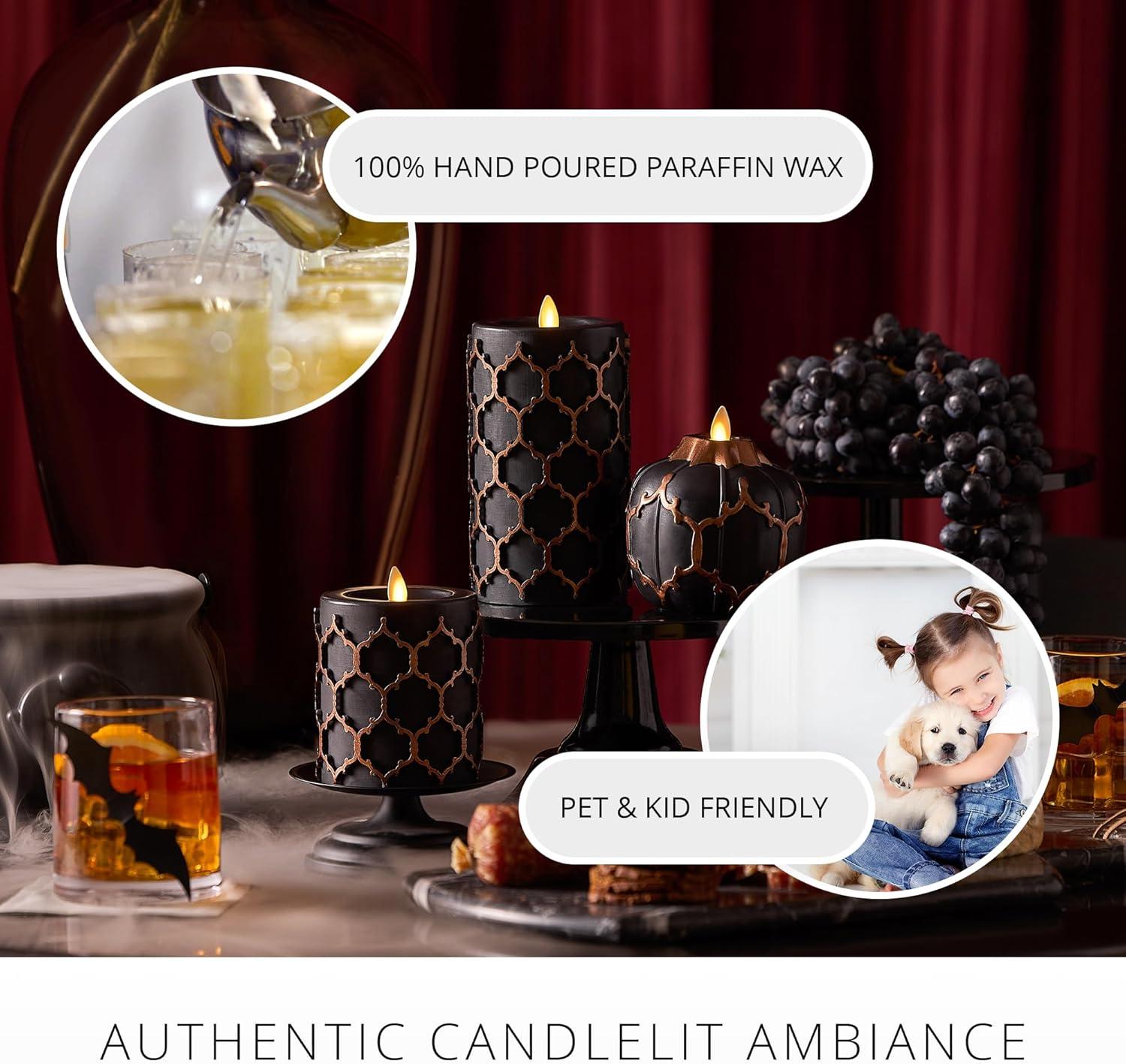 SAFE FLAMELESS DESIGN: This Unscented Halloween pillar provides worry-free candlelight ambiance in homes with children and pets. It's the perfect indoor lighting for pumpkin displays and hauntingly eerie decor.