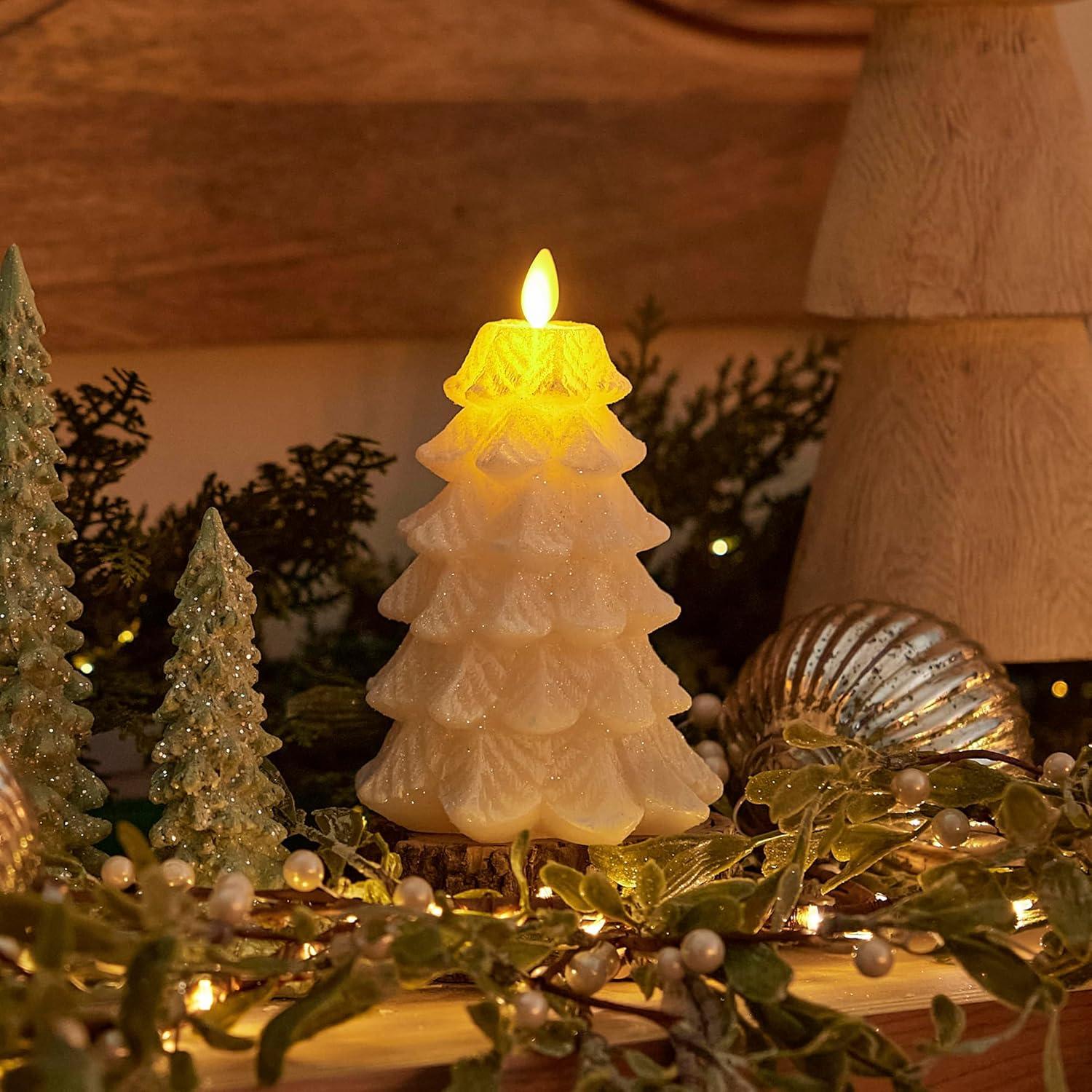 Luminara Brilliant Silver Glitter Flameless LED Candle North Tree Moving Flame Pillar (3.3″ x 4.3″)(Dark Green)