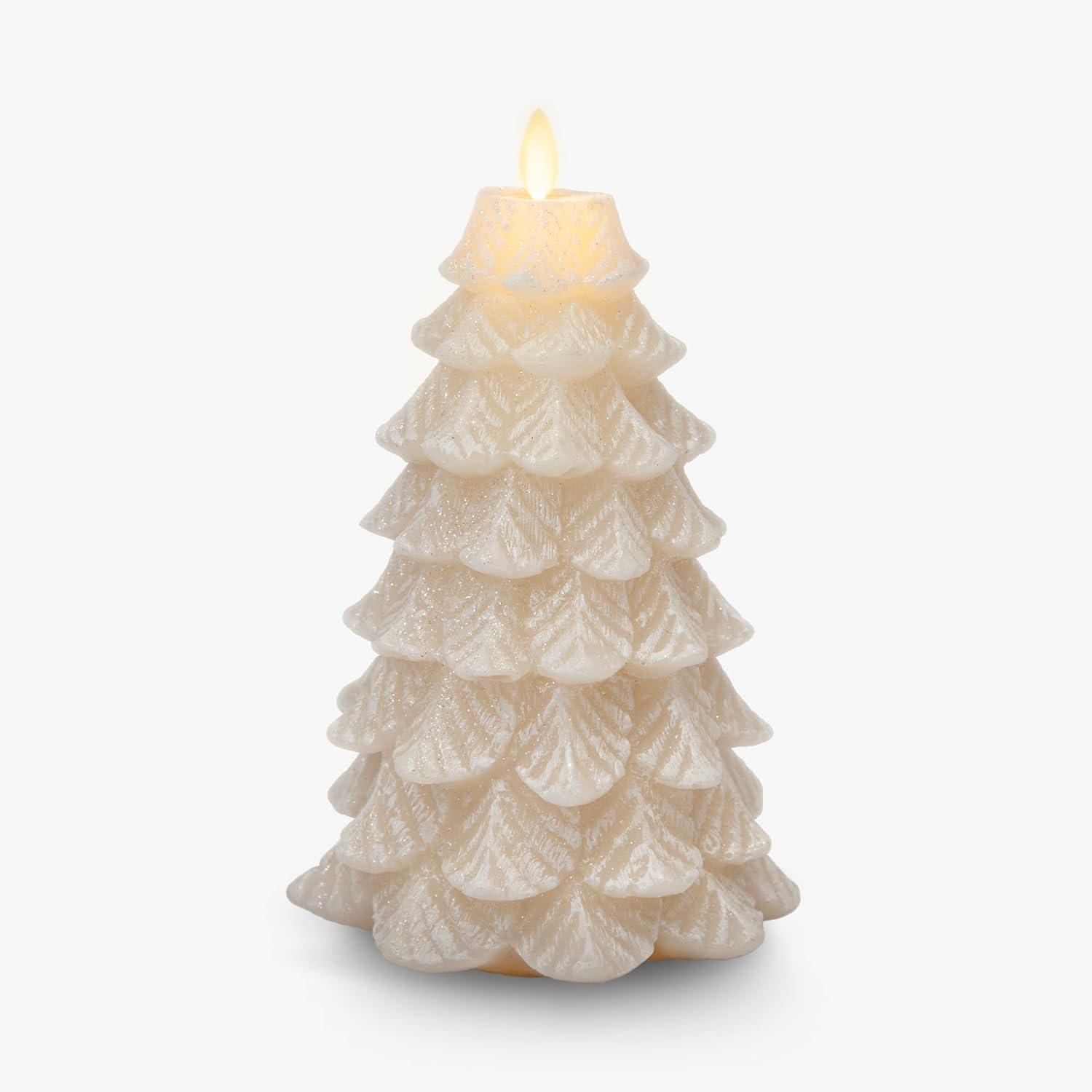 Luminara Brilliant Silver Glitter Flameless LED Candle North Tree Moving Flame Pillar (3.3" x 4.3")(White Swan)