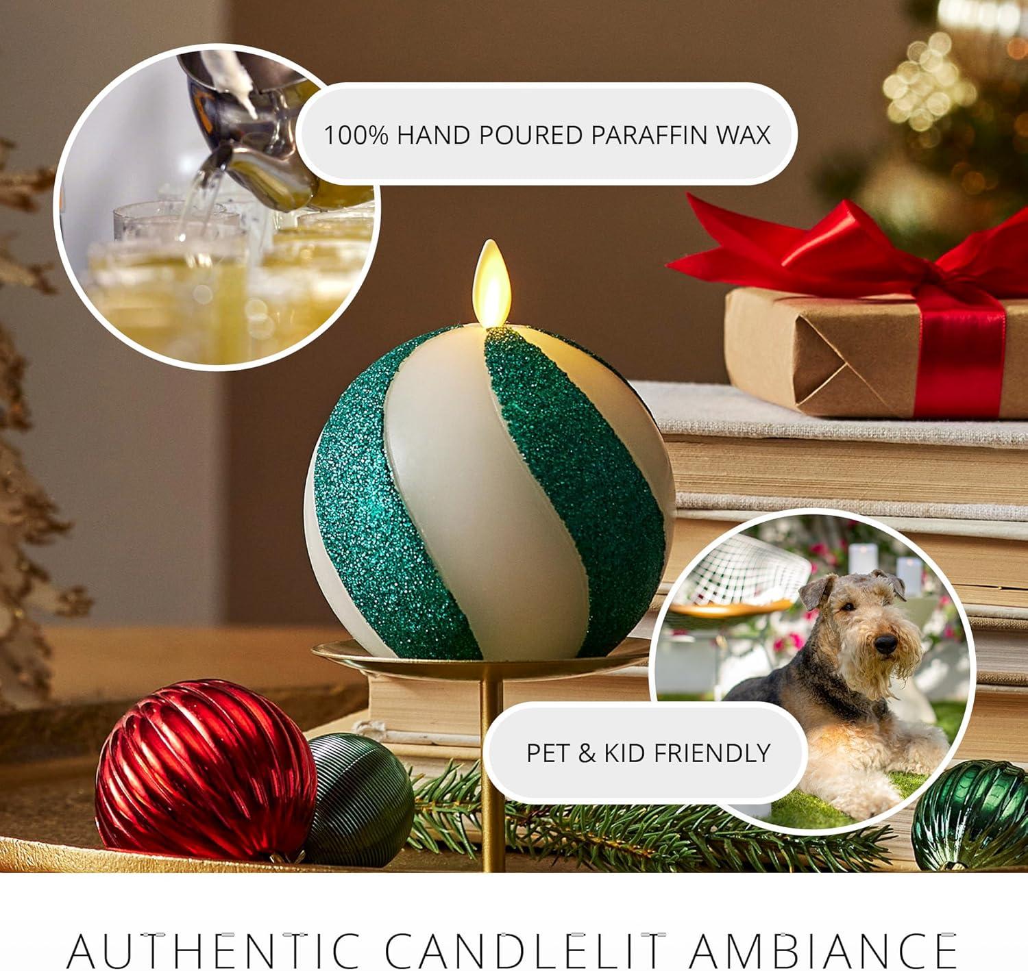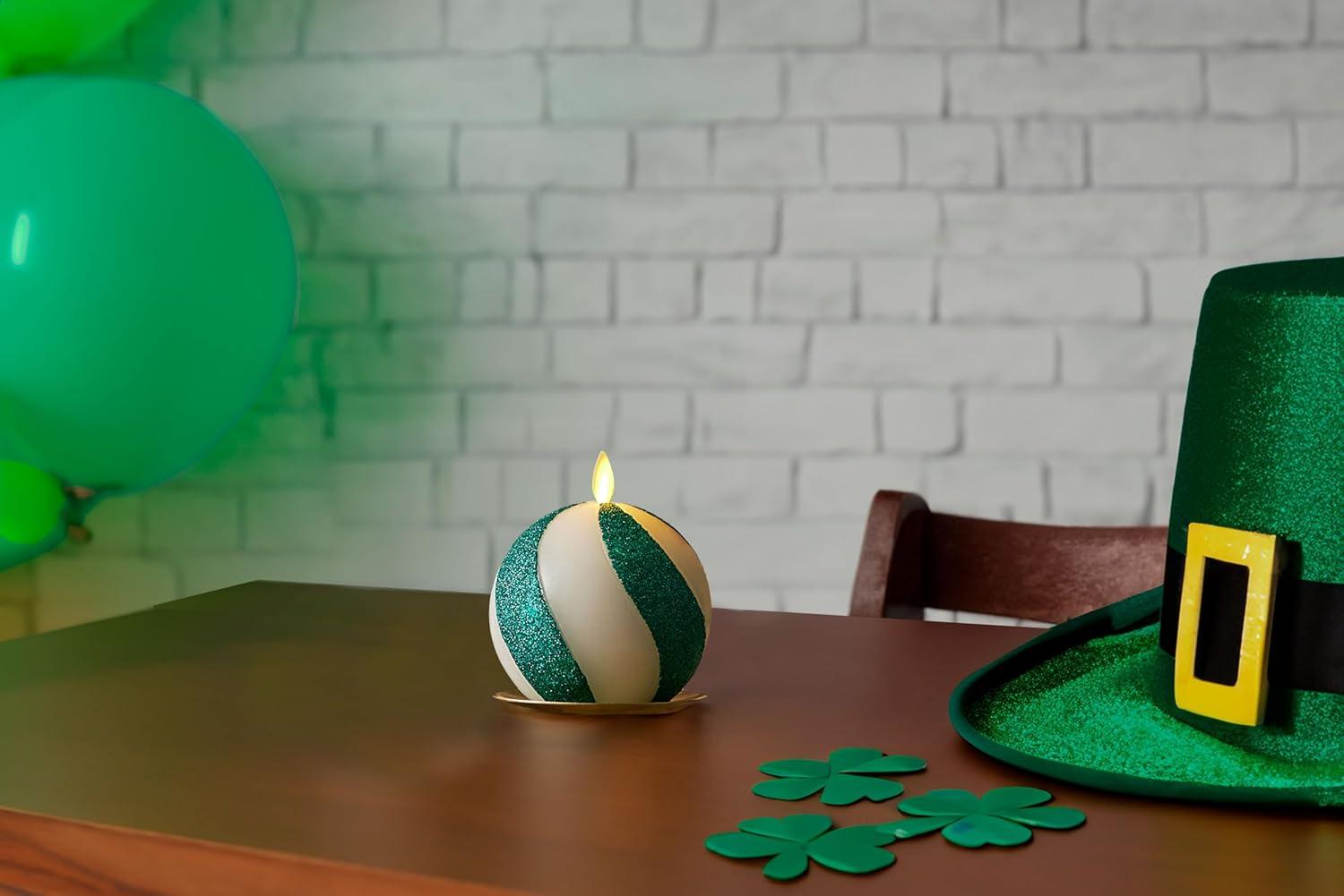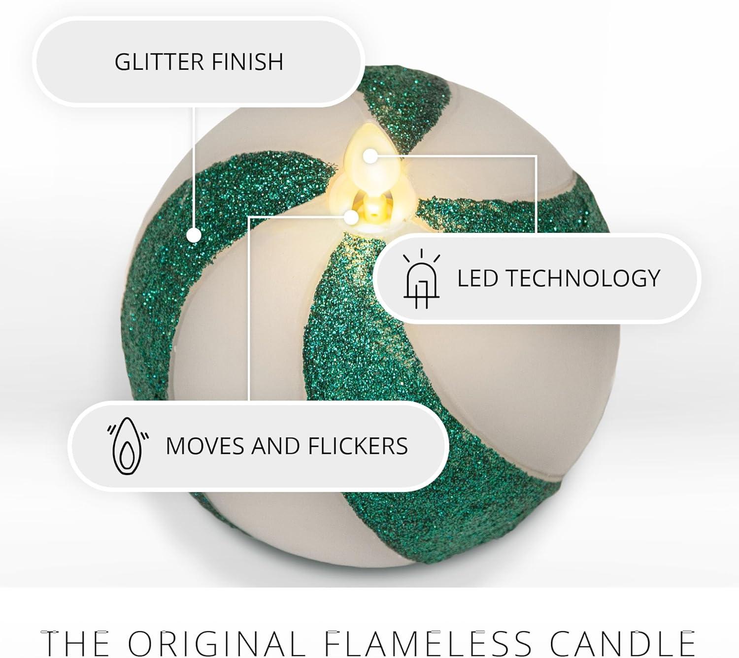 Luminara Embossed Fretwork Pumpkin (3.8″ x 4.3″) Flameless Halloween LED Candle Battery Operated Moving Flame (Black)(Candy Cane Green)