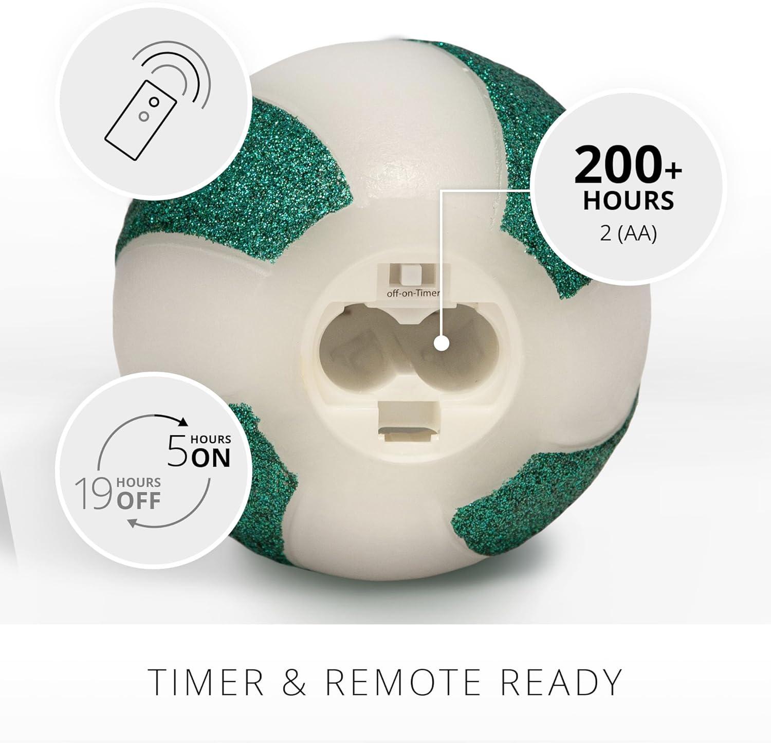 Powered by 2 AA batteries (not included), each candle offers 200 hours of safe and long-lasting illumination. Set the timer for 5 hours of brilliance, followed by an automatic 19-hour shutdown.