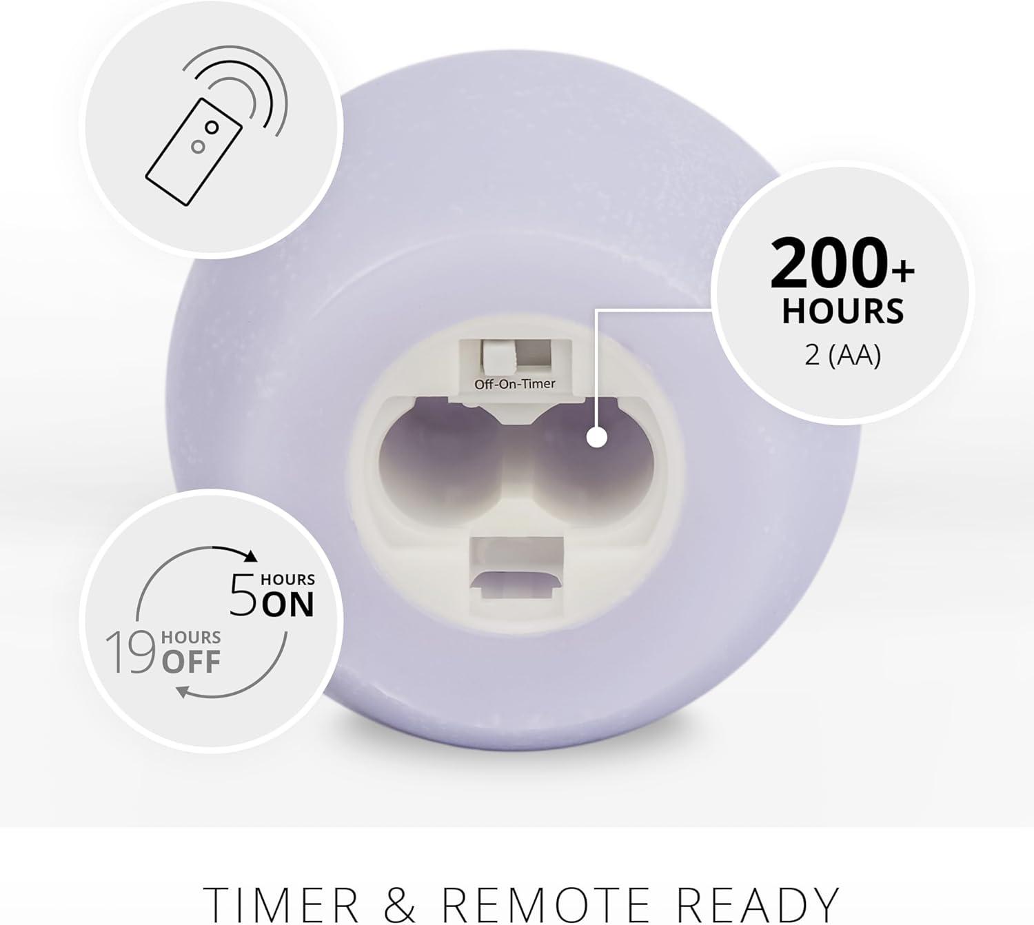 Powered by 2 AA batteries (not included), each candle offers 200 hours of safe and long-lasting illumination. Set the timer for 5 hours of brilliance, followed by an automatic 19-hour shutdown.