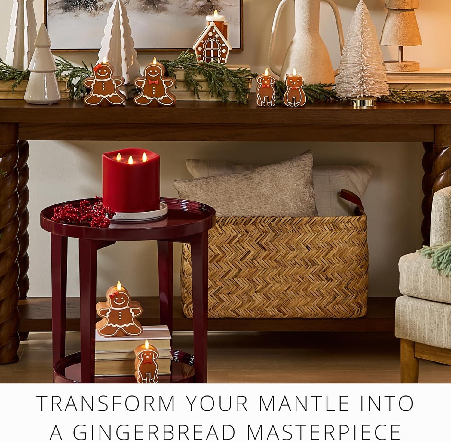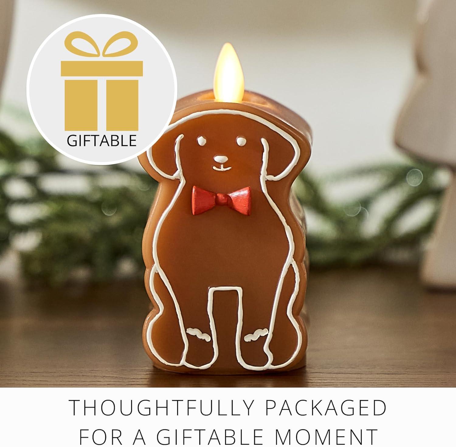 The Gingerbread Dog flameless candle has the comforting glow of authentic moving-flame technology that is safe and convenient during holiday celebrations and gatherings.