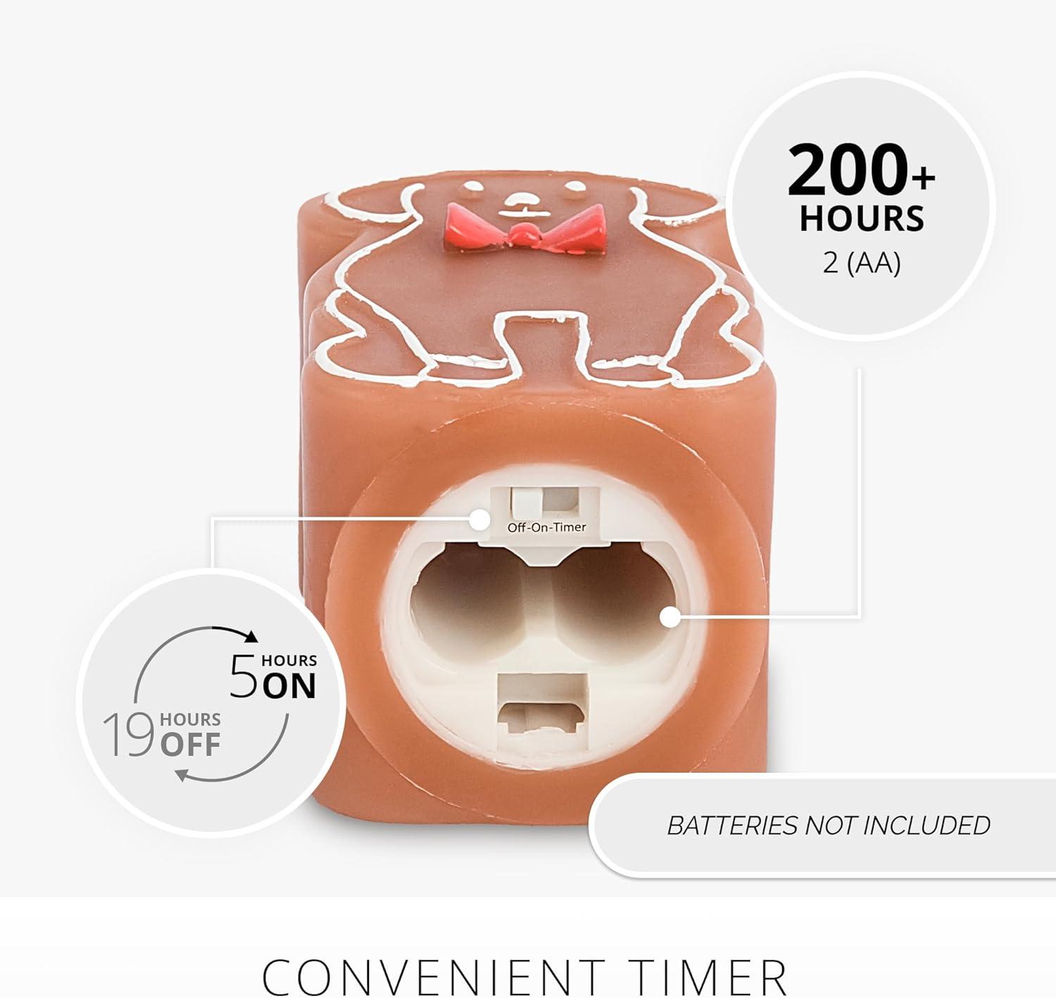 Powered by 2 AA batteries (not included), each candle offers 200 hours of safe and long-lasting illumination. Set the timer for 5 hours of brilliance, followed by an automatic 19-hour shutdown.