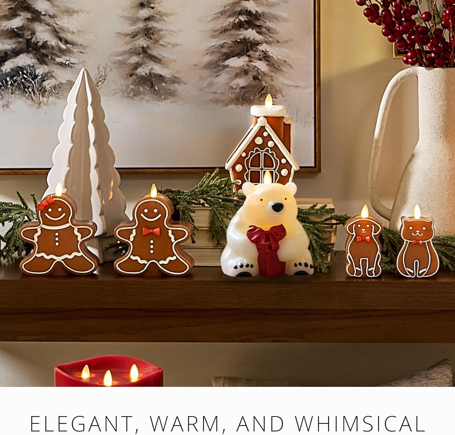 Luminara Flameless Candle Gingerbread Figural (2.3″ x 4.3″) Moving Flame LED Candle, Real Unscented Wax (Gingerbread Dog)(Gingerbread House)
