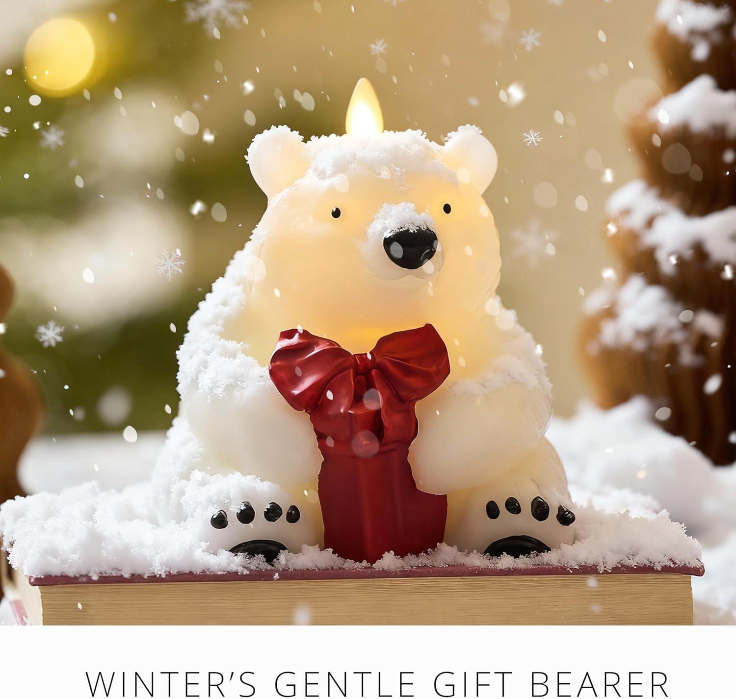 Luminara Flameless Candle Polar Bear with Gift Figural Moving Flame LED Candle (5″x5.5″)