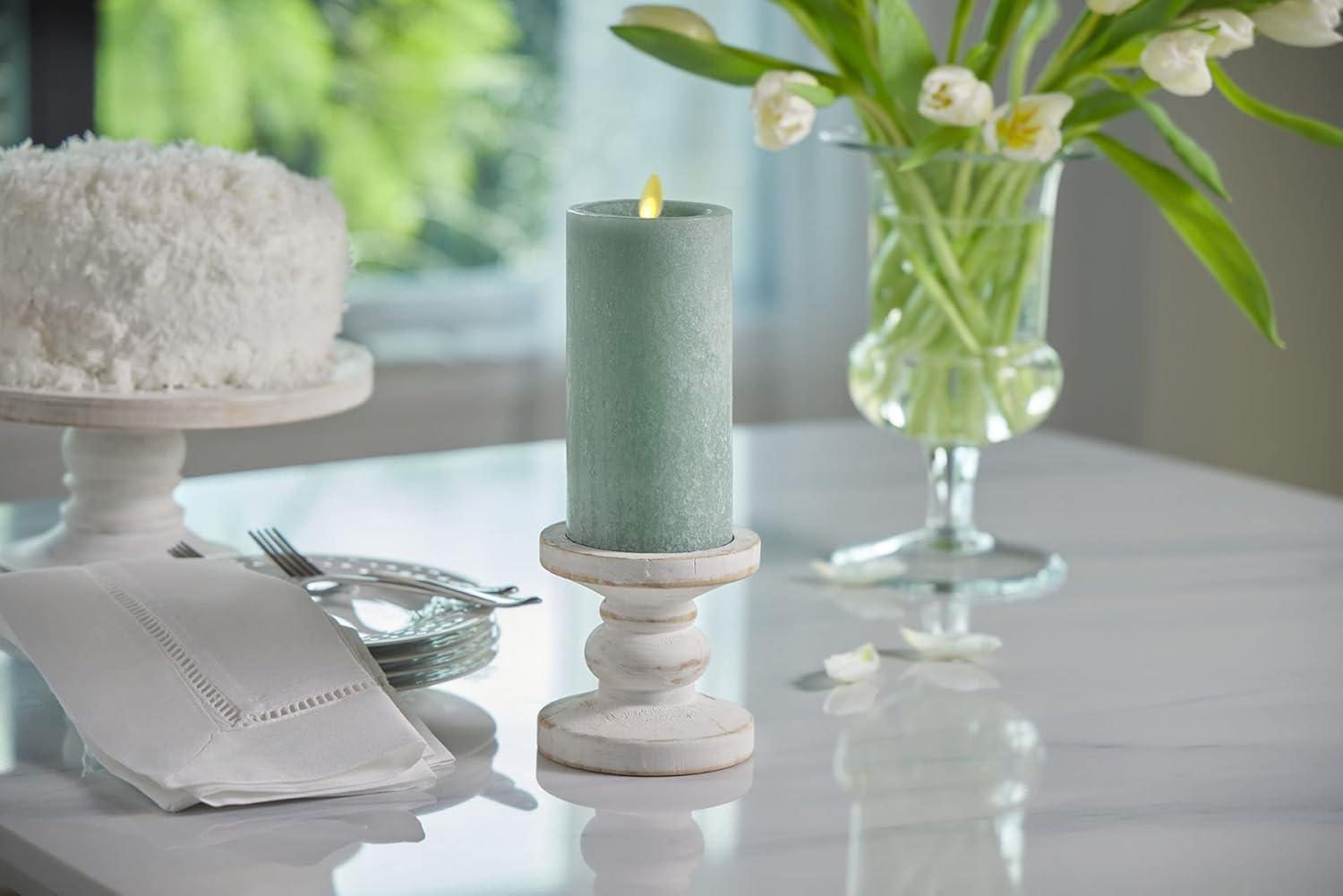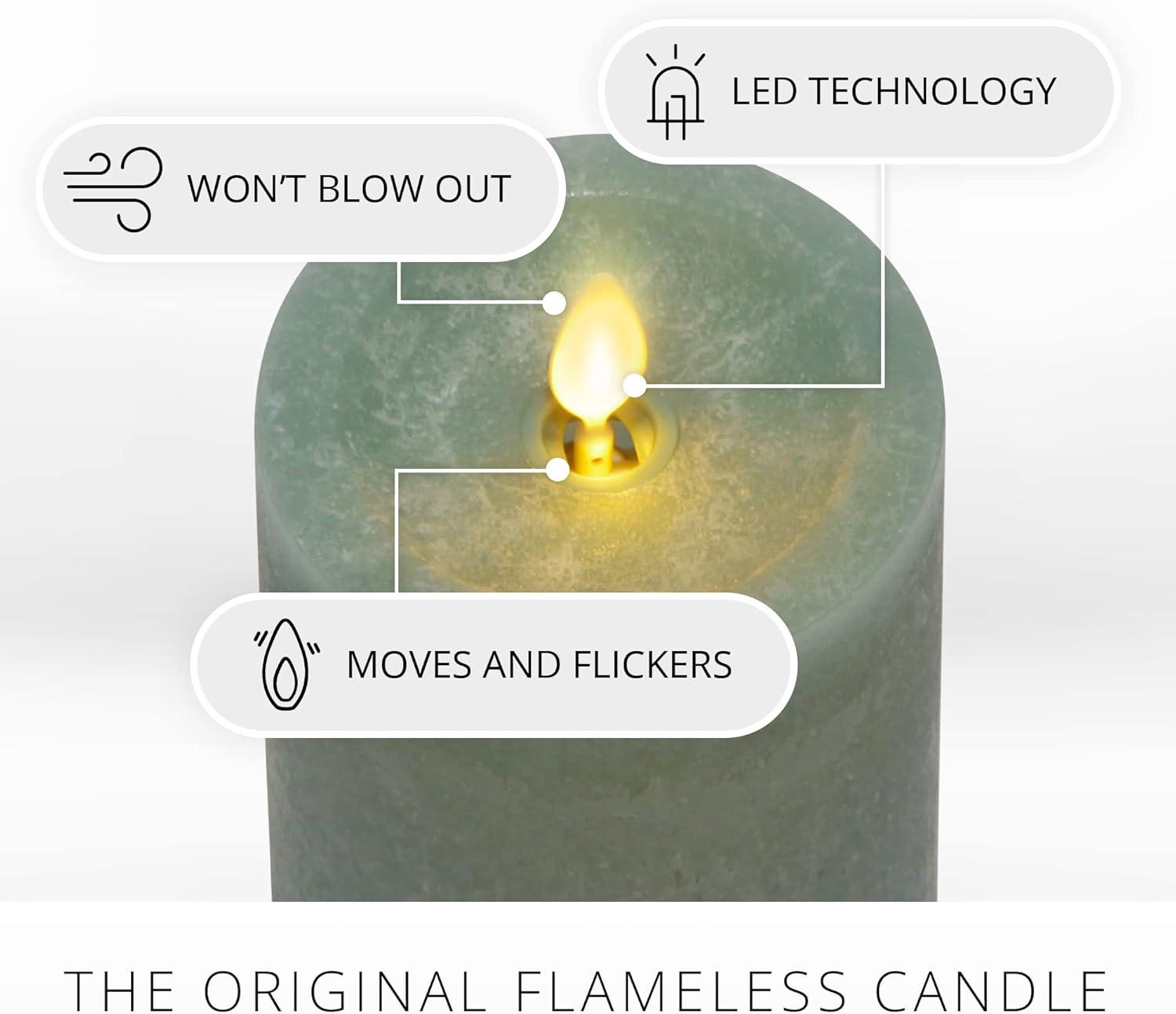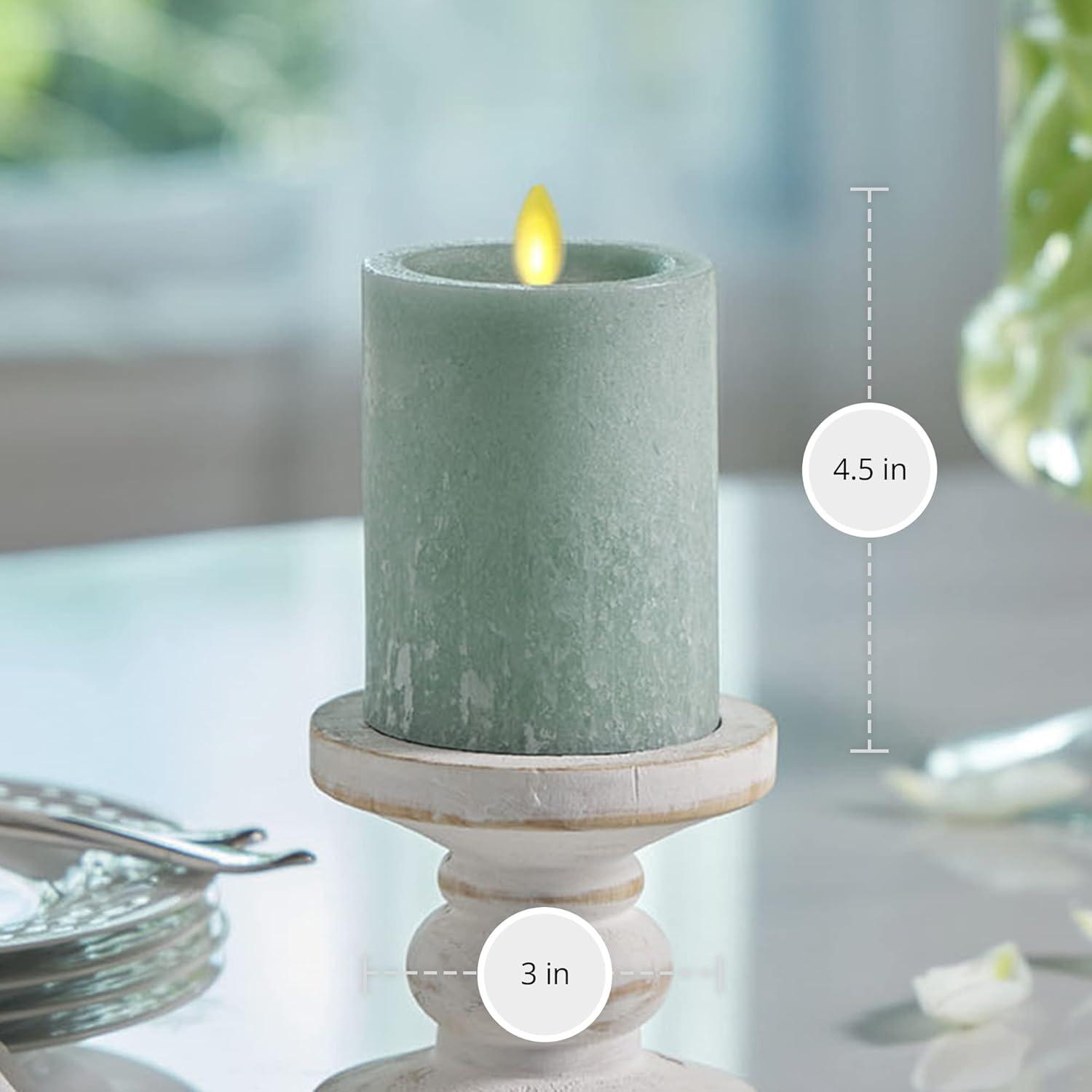 Luminara Iceberg Green Seaglass Flameless Candle Moving Flame Pillar, Unscented Real Wax with Recessed Edge, Timer, Battery Operated LED Candle Lights (3″ x 6.5″)(Timeless Taupe)