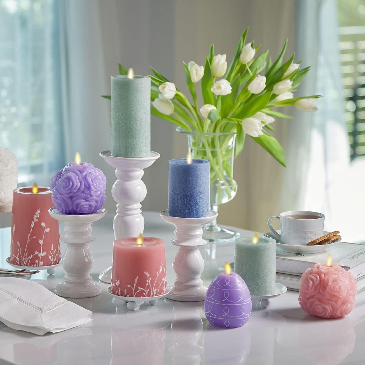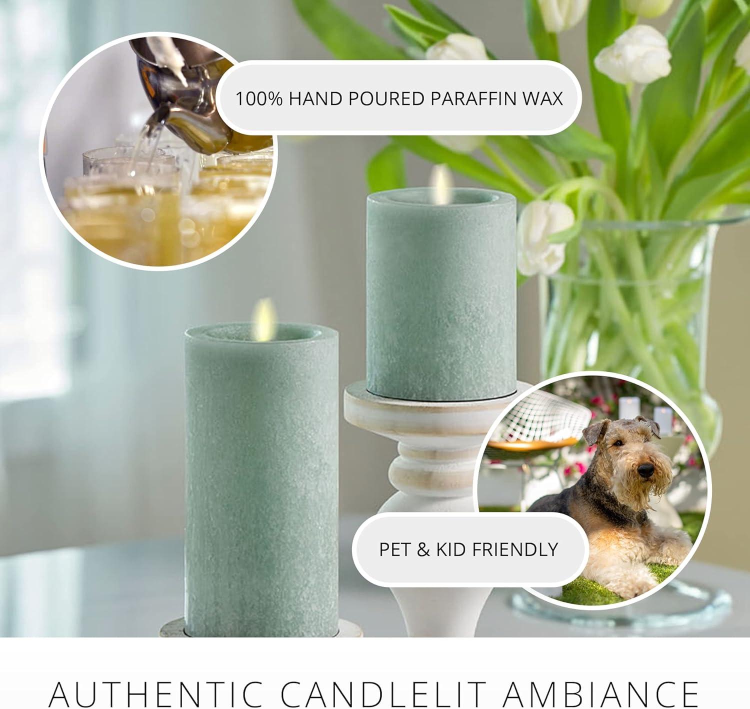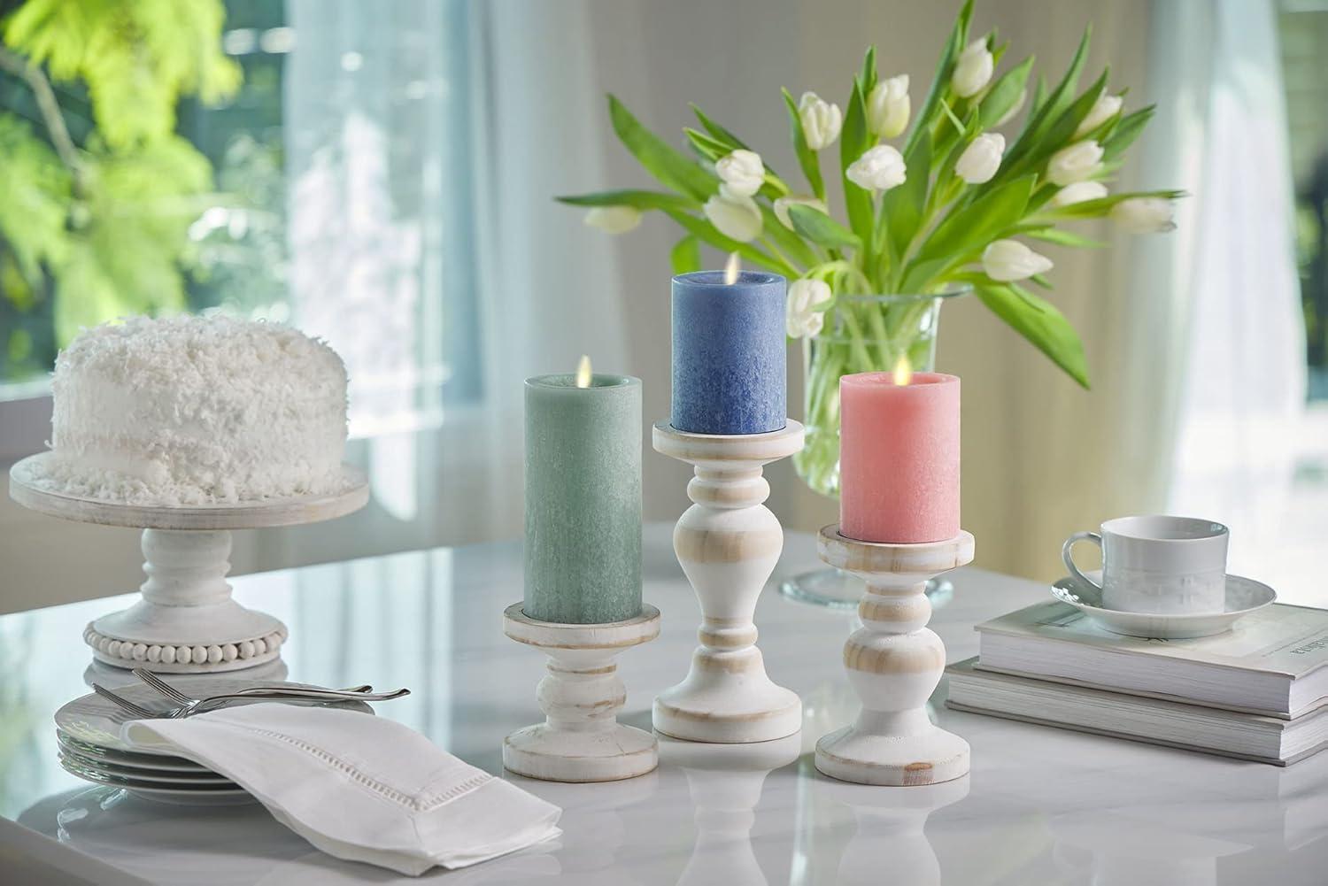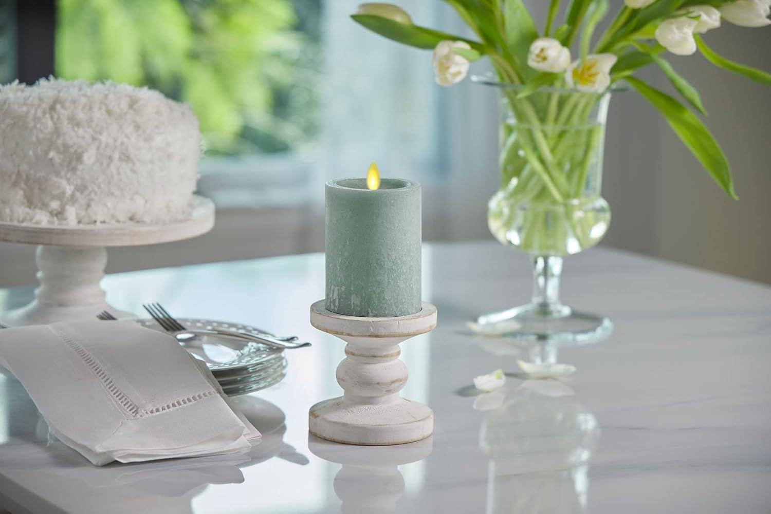 Luminara Iceberg Green Seaglass Flameless Candle Moving Flame Pillar, Unscented Real Wax with Recessed Edge, Timer, Battery Operated LED Candle Lights (3″ x 6.5″)(Timeless Taupe)