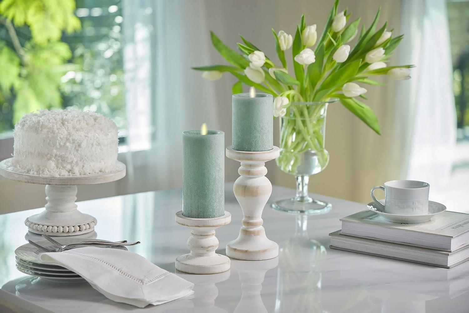 Luminara Iceberg Green Seaglass Flameless Candle Moving Flame Pillar, Unscented Real Wax with Recessed Edge, Timer, Battery Operated LED Candle Lights (3″ x 6.5″)(Green)
