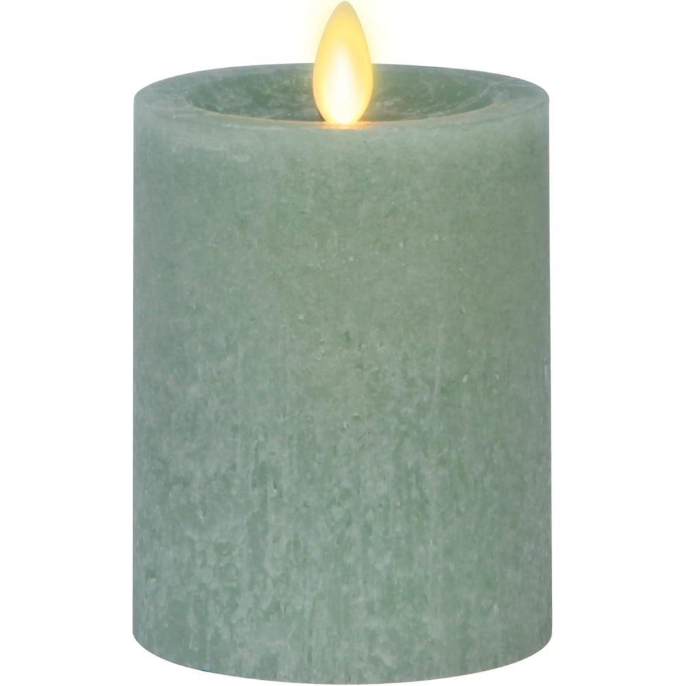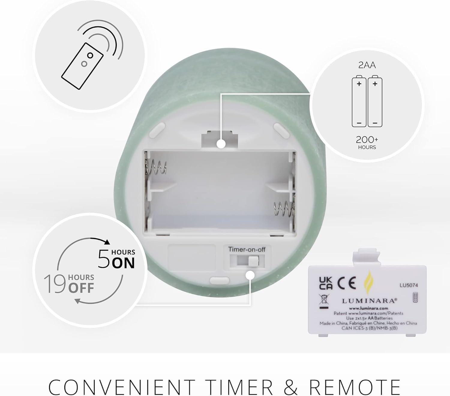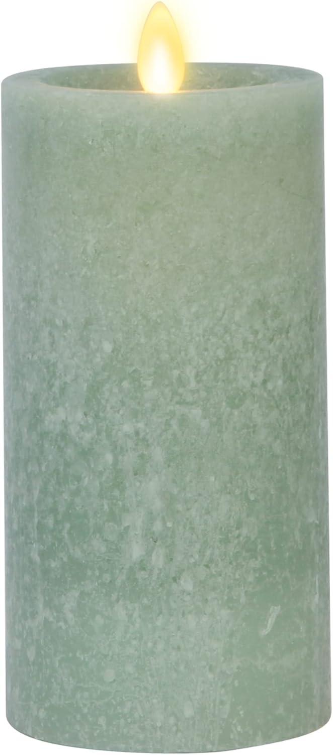 Luminara Iceberg Green Seaglass Flameless Candle Moving Flame Pillar, Unscented Real Wax with Recessed Edge, Timer, Battery Operated LED Candle Lights (3" x 6.5")(Green)