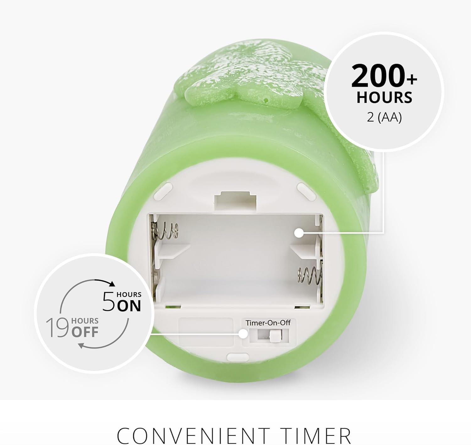 Crafted from 100% real wax, these candles combine beauty with durability for lasting enjoyment. The wax is colored a lovely light Kelly Green. The raised shamrock has a chalky finish that makes it really pop. The candle provides 200+ hours of illumination from only 2 AA batteries. Designed for indoor use only. Luminara's line of outdoor candles are perfect for providing a warm welcome in the open air.