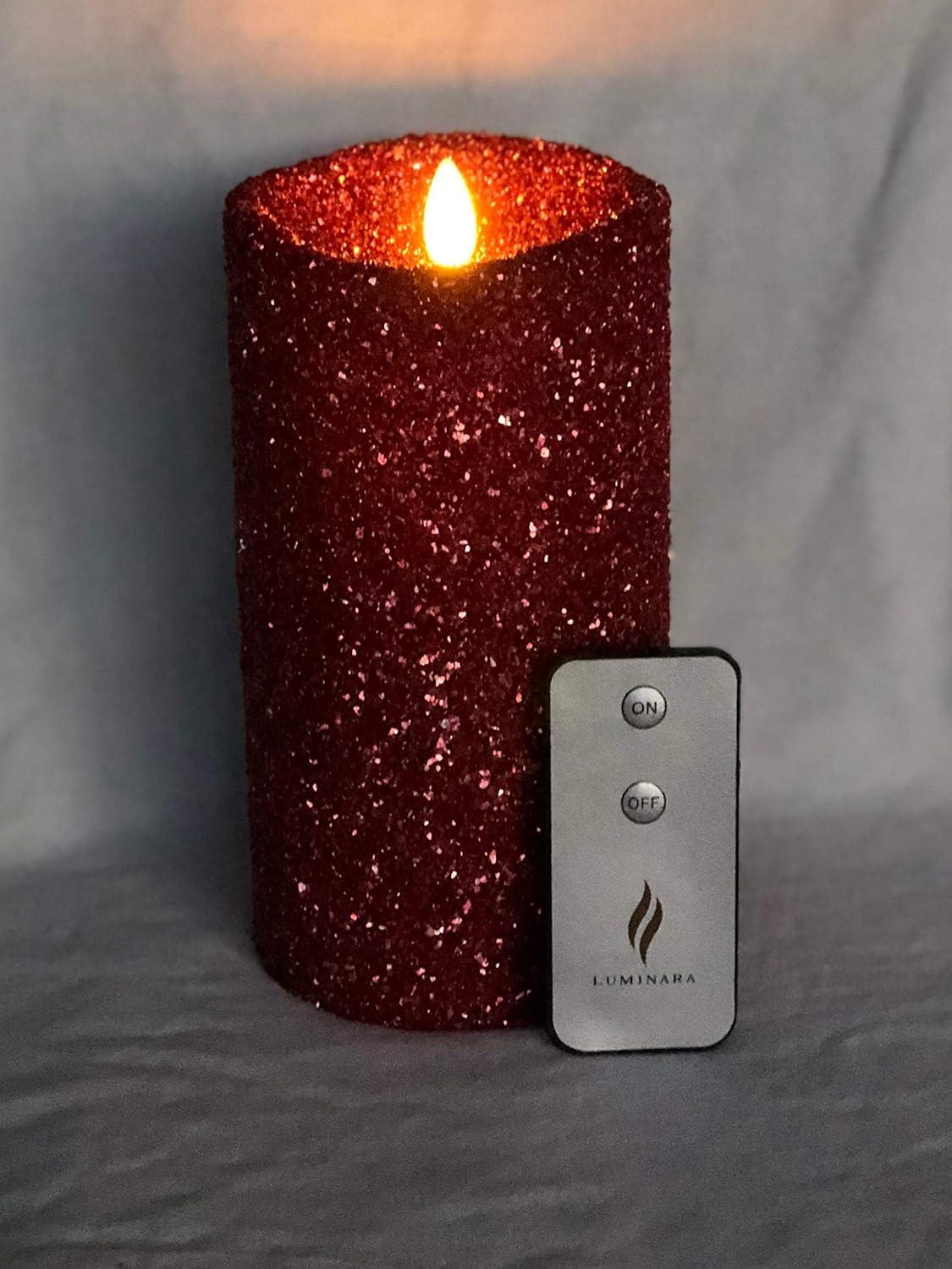 Luminara Realistic Artificial Flame Red Glitter Candle (3.5 x 5-inch) Moving Flame LED Battery Operated Lights – Unscented – Remote Sold Separately(Red)