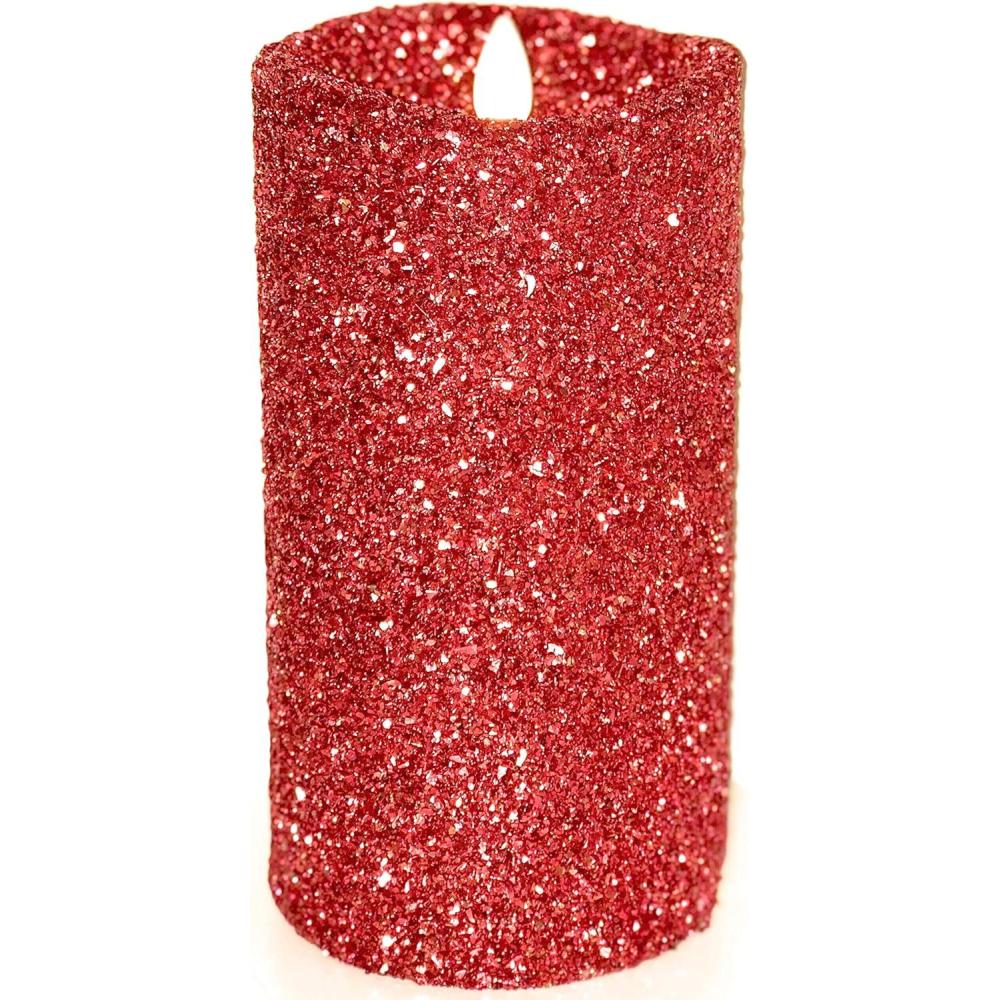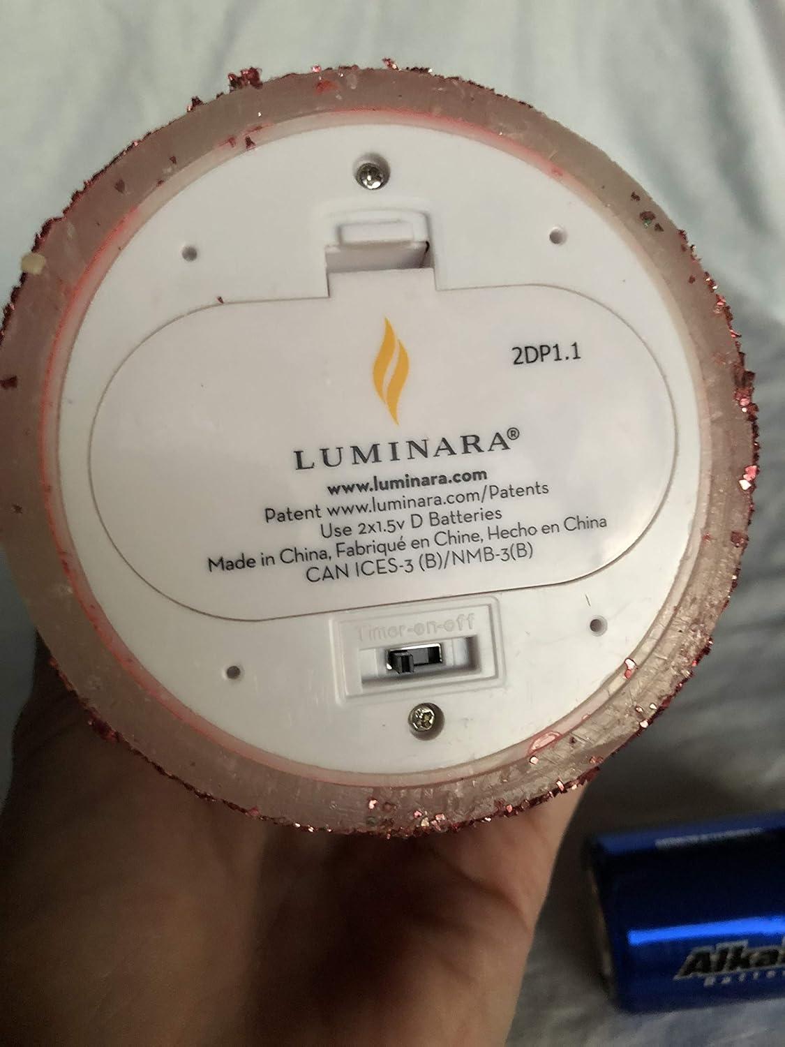 imageLuminara Realistic Artificial Flame Red Glitter Candle 35 x 5inch Moving Flame LED Battery Operated Lights  Unscented  Remote Sold SeparatelyRed